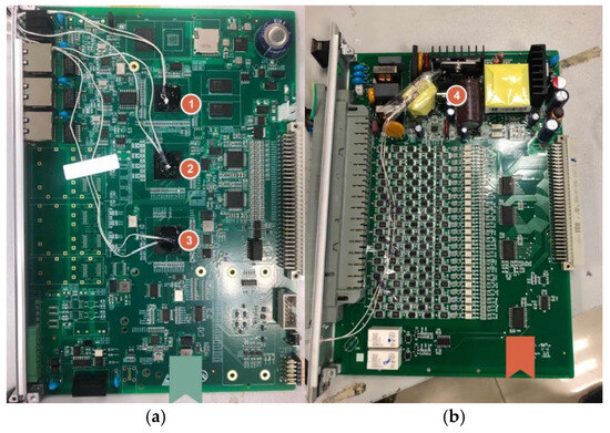 The specific measurement positions of (a) the CPU board and (b) the power board.
