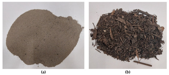 Raw materials used in the study: (a) ash, (b) compost.