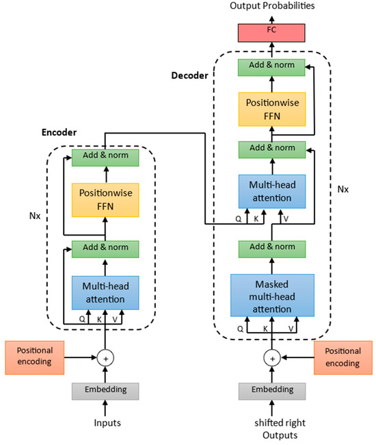 - Vaswani, A.; Shazeer, N.; Parmar, N.; Uszkoreit, J.; Jones, L.; Gomez, A.N.; Kaiser, Ł.; Polosukhin, I. Attention Is All You Need. Adv. Neural Inf. Process. Syst. 2017, 30, 5998–6008. [Google Scholar]
