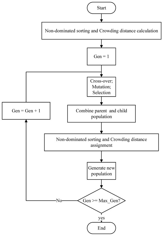 The operational workflow encompasses stages such as initialization, parent selection, crossover and mutation, offspring population creation, non-dominated sorting, and environmental selection. This intricate process ensures the exploration and maintenance of a diverse ensemble of Pareto-optimal solutions, thereby equipping decision makers with the capacity to make informed choices amid the intricate interplay of multiple objectives and their inherent trade-offs, as illustrated in Figure 3.