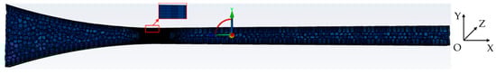 The internal flow of the S-CO2 centrifugal compressor is approximately the isentropic flow with local expansion processes. Therefore, numerical simulations under various, different near-critical conditions can be carried out in a relatively simple geometric model, which is the Laval nozzle. The simulations are to test the reliability of the nonequilibrium phase-change model and the corresponding two-phase-flow simulation method. The characteristics of the nonequilibrium phase-change flow field have been analyzed, and the results have been compared to the experimental data of Lettieri [10]. The experimental test apparatus consists of a blowdown test rig filled with high-pressure CO2. The exhaust gas flows through the Laval nozzle. The nozzle length is 91.3 mm, the throat area is 20 mm2, the height of the throat is 3.09 mm, and the distance from the throat to the exit is 61.3 mm. The inlet-to-throat and outlet-to-throat area ratios are 4.1 and 1.3, respectively. The grid independence analysis is carried out with three kinds of mesh sizes. The inlet conditions are set as 7.4 MPa and 310 K. The pressure distribution along the axial center of the nozzle is shown in Figure 2. It is evident that the distribution of pressure has no significant difference between 1,176,277 cells and 2,293,147 cells. Therefore, the mesh size is set as 1,176,277 cells, as shown in Figure 3.