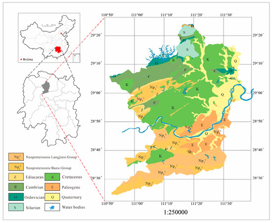 The Reshi Town is situated 64 km north of Taoyuan County in Hunan Province, near Cili County and Shimen County. It is in the low-temperature geothermal resource area and is situated in the southeast extension zone of the northeastern end of the Huayuan–Zhangjiajie–Cili regional deep, large heat-controlling fault in Hunan Province. The main structures of the regional structure are the Reshi anticline, the Qigushan compressive fault (F1), the Zhoujiarong torsional fault (F2), the Reshi extensional fault (F3), and the tension–torsion fracture of Xianniang Temple (F5). In addition, a torsional translational fault (F4) forms in the Reshihe Valley hot spring outcropping region.