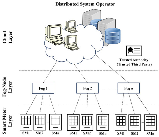 - Khan, H.M.; Khan, A.; Jabeen, F.; Anjum, A.; Jeon, G. Fog-enabled secure multiparty computation based aggregation scheme in smart grid. Comput. Electr. Eng. 2021, 94, 107358. [Google Scholar] [CrossRef]