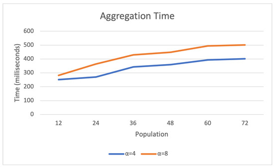 Homomorphic encryption (HE) is a mechanism commonly employed to facilitate privacy-preserving data aggregation [21]. HE refers to encryption in which mathematical operations can be performed on the cyphertext, and the result will be equivalent to having encrypted the result of the same operation performed on the plaintext. For example, assuming an HE-based encryption function and the use of the sum operator (+) as the aggregation function, then . Hence, the aggregated result can be decrypted without knowing the nature of the individual operands.