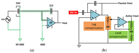 - Jiang, C.; Liu, H.; Zhou, F.; Yin, X.; Yuan, J.; Li, M. The development of an active capacitive voltage divider. Electr. Meas. Instrum. 2019, 56, 148–152. [Google Scholar]