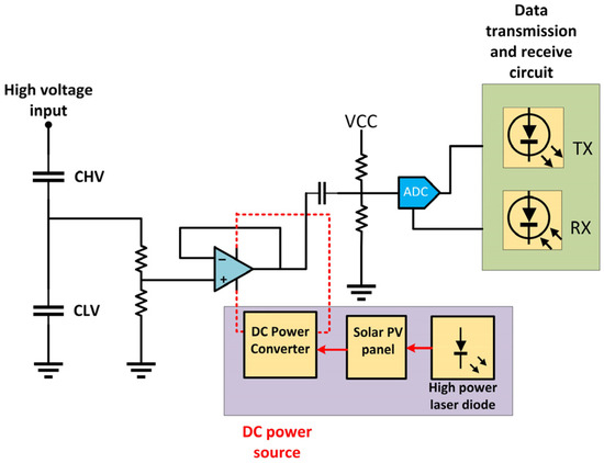 - Svelto, C.; Ottoboni, M.; Ferrero, A.M. Optically-supplied voltage transducer for distorted signals in high-voltage systems. IEEE Trans. Instrum. Meas. 2000, 49, 550–554. [Google Scholar] [CrossRef]