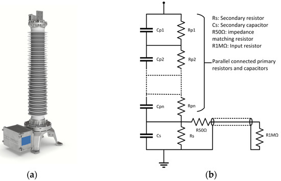 - Pfiffner_Group Resistive Capacitive Voltage Divider ROF. Available online: https://www.pfiffner-group.com/products-solutions/details/resistive-capacitive-voltage-divider-rof (accessed on 2 September 2023).