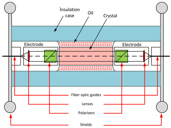 - Long, F.; Zhang, J.; Xie, C.; Yuan, Z. Application of the Pockels Effect to High Voltage Measurement. In Proceedings of the 2007 8th International Conference on Electronic Measurement and Instruments, Xi’an, China, 16–18 August 2007; pp. 495–499. [Google Scholar]