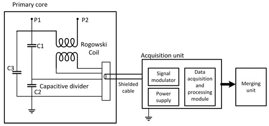- Middleton, E.E.R. New Dry Type Insulated Non-Conventional Instrument Transformers for Your IEC 61850 Digital Substation. In Proceedings of the 2023 CIGRE Canada Conference, Vancouver, BC, Canada, 25–28 September 2023; CIGRE: Vancouver, BC, Canada, 2023. [Google Scholar]