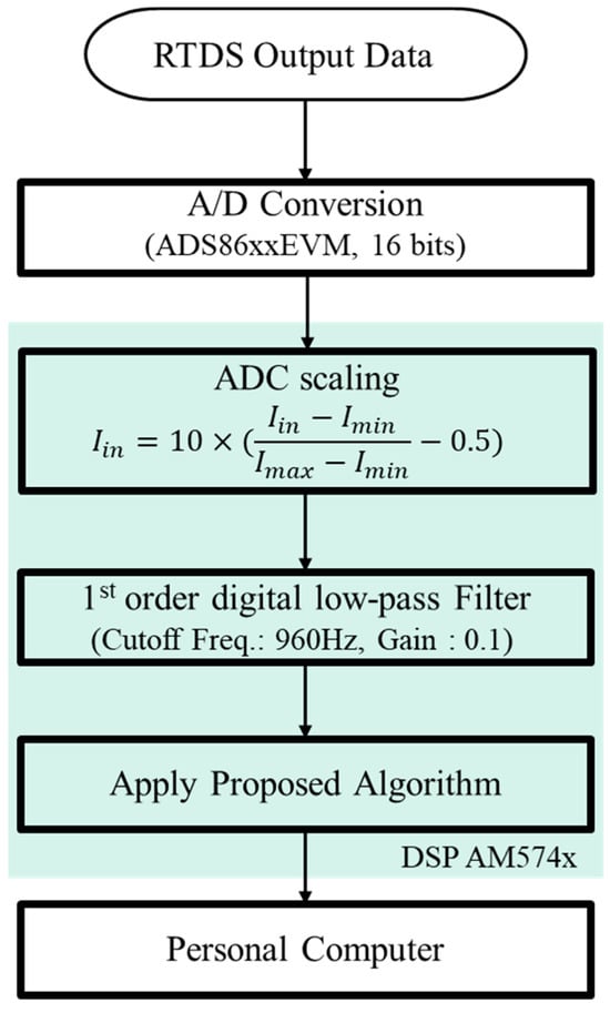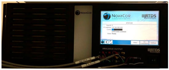 An RTDS module as shown in Figure 11 was used to generate analog signals. Similarly, the power system configuration in PSCAD/EMTDC was used to model in RSCAD. Analog signals were converted to digital signals using the TI ADS86xx EVM as shown in Figure 12a, operating at 3840 Hz. All digital signals were then processed by the TI AM574x IDK depicted in Figure 12b.