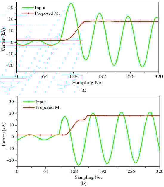 A deep neural network (DNN) was used to manage the problems that arise when filters do not adequately manage different time constants, noise, and harmonics during DDCO removal [,,]. The method in [] uses the multilayer perceptron architecture to predict both current and voltage signals. Subsequently, it computes the complex apparent impedance through an ongoing online training process. In [], mathematically generated fault current signals under various conditions were generated for training the DNN model. Consequently, the model can be used to remove DDCO from the fault current signal; thus, such DNNs are often effective. The method of [] also used a DNN to remove DDCO from the fault current waveform, but fewer samples were required (less than one cycle). However, practicality is a concern; the deep layers of DNNs impose high computational burdens. Because the networks are trained offline, certain errors might arise in various environments, such as changes in the voltage level. DNNs would be more effective if it were possible to train them online; this would allow rapid adaptation to a new environment.