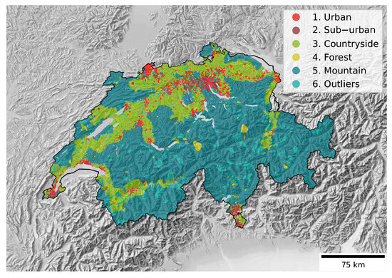 Typical districts distribution in Switzerland. The clusters differentiate the morphological and meteorological characteristics of the Swiss building stock.