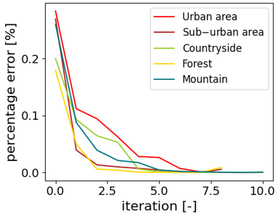 Convergence curves: percentage error between lower and upper bounds with a maximum of 10 iterations.