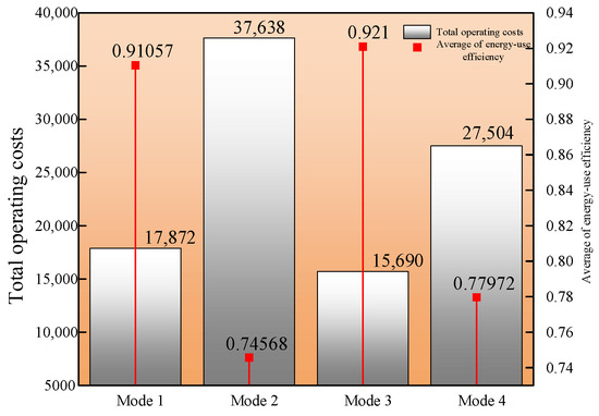 Mode 4: On the basis of Mode 2, user thermal comfort is not considered, i.e., only the operating cost objective of the EH optimization layer needs to be considered in the optimization, and the parameter α is optimized once for each operating period within 24 h, and the other settings are the same as in Mode 2.
