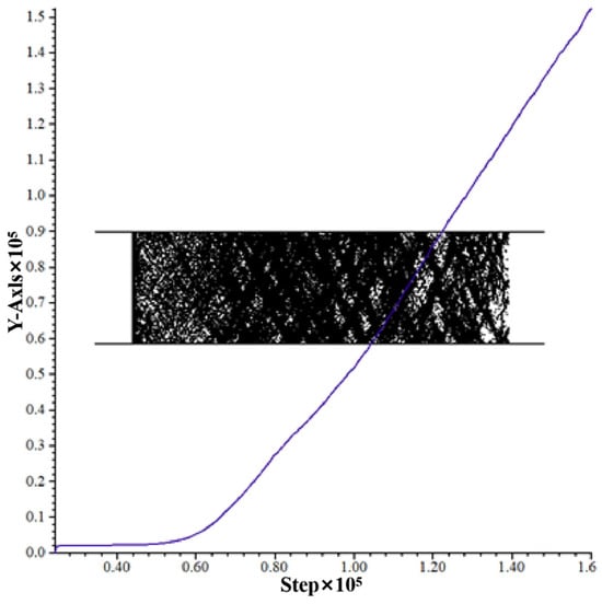 The purple line in the figure represents the statistical data on fissure generation in the model [Figure 10]. It can be observed from the statistics that this process involves two distinct stages. Initially, small fissures primarily occur within the fractured region between the top coal and coal wall while maintaining the predominantly elastic behavior of the coal body. As bearing strength increases, extensive rupture of the coal body initiates from its right side and progresses towards leftward movement. Simultaneously, stress concentration shifts to preceding areas of broken coal accumulation, resulting in a linear growth pattern for fissure development.
