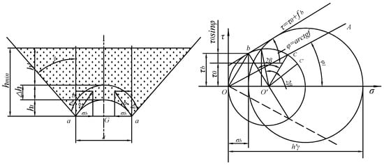Let a combined stress σ act on the planes ab and ac of the separating body and decompose σ into a shear stress τb. The gravitational force G of the separating body is taken as: