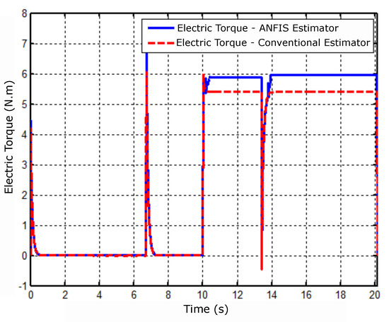 Figure 7 shows the behavior of the electrical torque in the conditions imposed in the simulation with conventional estimators and with the Neuro-Fuzzy estimator.