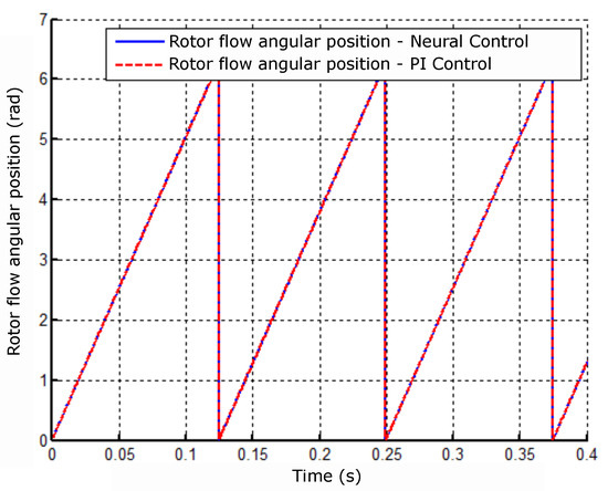 Angular position result of the rotor flux with the neural controller and PI of velocity.