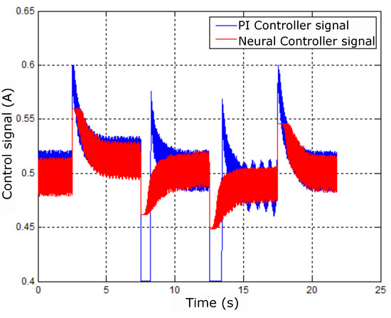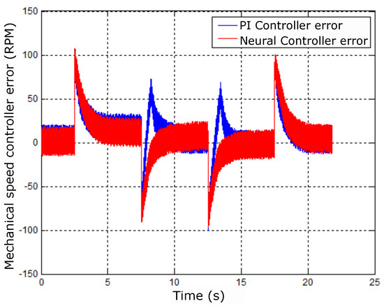 Figure 37 shows the errors of the controllers being acted on by the PI and neural controllers. There is also a difference in amplitude between the controllers due to the effect shown in Figure 35; the responses are also different.
