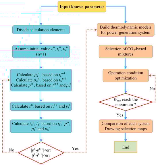 Figure 3 shows the flow chart of the IPEC model solution procedure. As the ORC, t-CO2, and SF systems have been extensively studied and can be found in many existing references, it is considered that the thermodynamic models of ORC, t-CO2, and SF are well known, and so are not elaborated here. In our previous study [36], the models of ORC and SF were extensively reviewed and elucidated. The t-CO2 model was introduced in detail by Guo et al. [37].