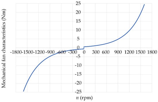 Table 1 was used for this research. Due to the lack of a fan with the parameters described in Equation (3), the experimental studies were carried out for a motor loaded with a magnetorheological brake [