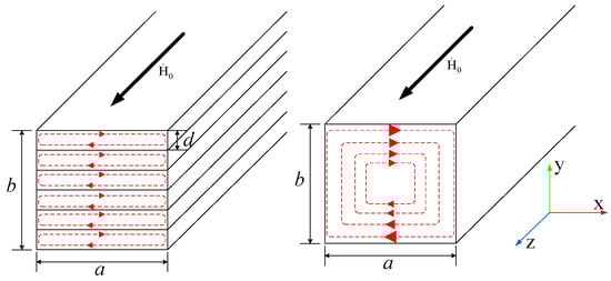 - Wang, J.; Lin, H.; Huang, Y.; Huang, L. Numerical Analysis of 3D Eddy Current Fields in Laminated Media Under Various Frequencies. IEEE Trans. Magn. 2012, 48, 267–270. [Google Scholar] [CrossRef]
