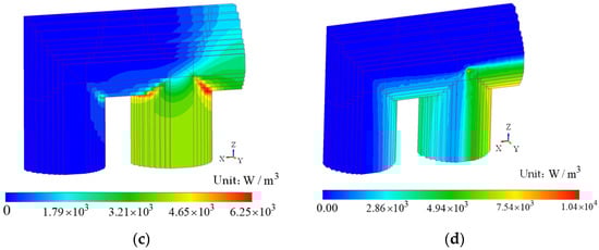 Contrast between fine modeling and non-fine modeling. (a) Non-fine magnetic density. (b) Fine magnetic density. (c) Non-fine eddy current loss. (d) Fine eddy current loss.