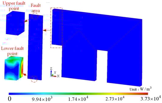 As can be seen from Table 9, the eddy current loss of 1/8 model under non-fault condition is 7.76 W, the eddy current loss under multi-point grounding fault reaches 8.84 W with a loss increment of 13.90%, and the eddy current loss under interlaminar short circuit fault reaches 7.79 W with a loss increment of 0.42%. Accordingly, the increment of iron loss under the two faults is consistent with that of eddy current loss, which is also 13.90% and 0.42%. These increased losses will be introduced into the thermal field as a heat source for simulation.