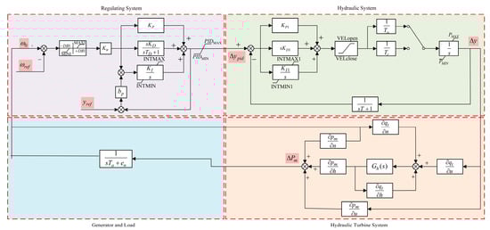 Extensive on-site investigations reveal that the speed regulation system for domestic hydraulic turbines is predominantly electro-hydraulic, offering superior response times and adjustment quality compared to older mechanical hydraulic speed regulators. Figure 1 illustrates a typical control model block diagram of a hydropower system, encompassing a regulating system, hydraulic system, turbine system, generator and load system.