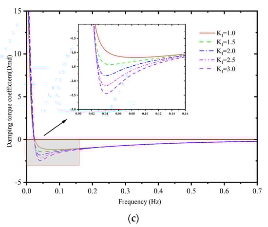 The influence of Tw, KP, and KI on the damping torque coefficient of the system: (a) varying Tw; (b) varying KP; (c) varying KI.