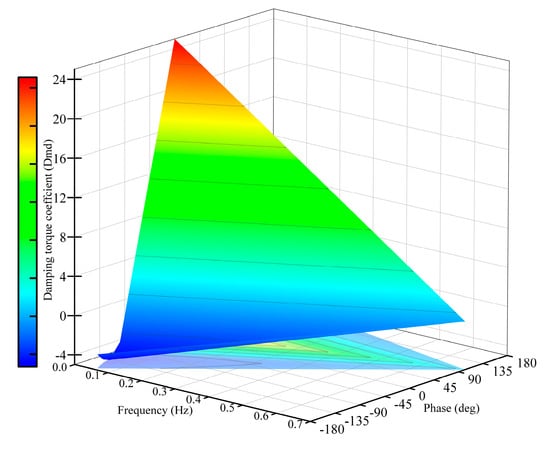 It can be observed intuitively that the hydraulic turbine speed control system exhibits positive damping characteristics when the phase difference between and lies within the range of −90° to 90°. Conversely, the damping characteristics become negative when this phase difference ranges from 90° to 270°. Especially in the ultra-low-frequency band, a decrease in frequency leads to an increased phase angle difference between and , resulting in a reduction in the damping torque coefficient.