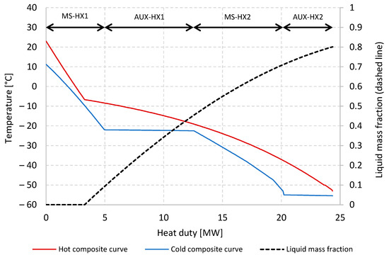- Auxiliary cascade refrigeration cycle with propane and ethane as refrigerants;