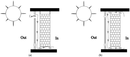 - Duan, S.; Jing, C.; Zhao, Z. Energy and Exergy Analysis of Different Trombe Walls. Energy Build. 2016, 126, 517–523. [Google Scholar] [CrossRef]