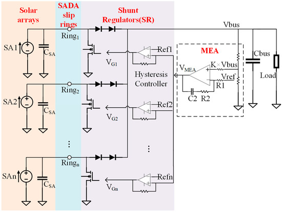 33]. In steady-state conditions, it is generally ensured that only one shunt regulator operates in switching mode while the others remain in bus feeding mode or shunt mode.