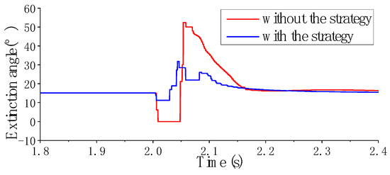 Arc extinction angle curves of the standard CIGRE HVDC test system with and without the developed strategy (Lg = 0.24 H).