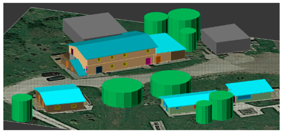 The energy model of the rural complex (Figure 8) was divided into 46 thermal zones, modelled according to the different functions of each room. In total, 37 are part of the first heating circuit and 9 of the second one concerning the agri-spa. Each thermal zone was modelled according to UNI/TS 11300-1 [39]: