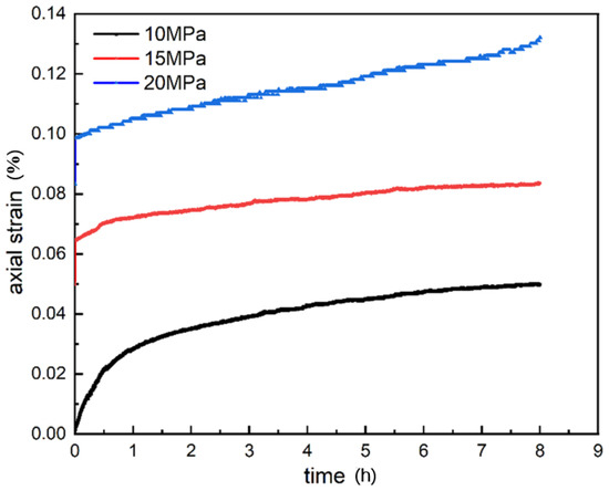Axial strain data when the differential stress is 10MPa, 15 MPa, and 20 MPa.