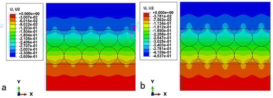 As shown in Figure 16, the vertical displacement decreases sequentially from the top to the bottom. When the calculation is terminated, the proppant is slightly embedded in the formation, and the amount of proppant embedded in the middle is about 0.0488 mm. The variation in fracture width (referring to the minimum fracture width here) is 0.352 mm. The embedding amount accounts for 27.7% of the half fracture width variation, and the seam width variation rate, which is the ratio of fracture width variation to the original fracture width, is 1.76%.