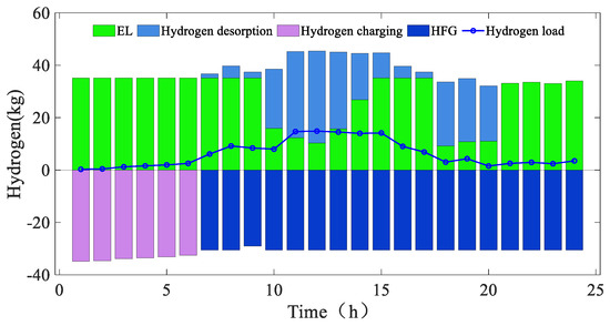 An alkaline EL is selected as the hydrogen production unit in this paper. The relationship between the EL input electrical power and the hydrogen production output is as follows [37]: