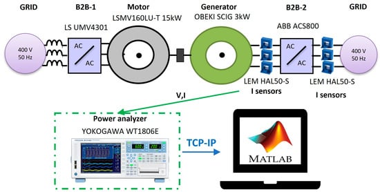 The objective of the present study is to analyse the behaviour of the generator of a wave energy converter PTO. Figure 8 shows the configuration of the test rig. The electrical generator under test is a 3 kW Squirrel Cage Induction Generator (asynchronous generator) supplied by OBEKI and has a relation of 1–5 in power with the motor. Its main features are described in Table 1.