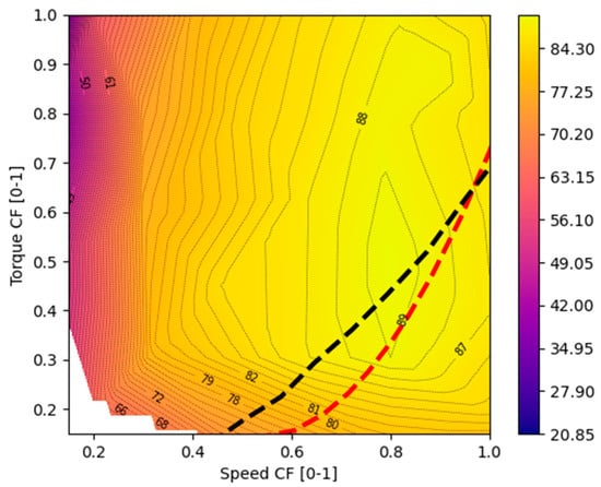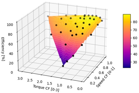 The total CF was calculated as CFtorque∗CFspeed. Figure 10 shows the resulting efficiency map of the test cases carried out for each speed/torque combination.