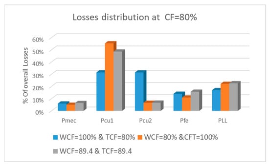 To obtain a better understanding of the influence of torque and speed on the different types of losses, several cases were defined for a total Capacity Factor (CF) in the range of 4–100%.
