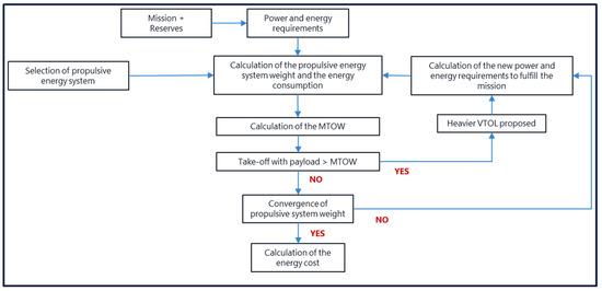 The take-off weight of a VTOL aircraft for a given mission is then calculated for each energy carrier/propulsive system combination. The assumptions made in this study are detailed in Table 1 and Table 2 while the design stages are described in Figure 4.