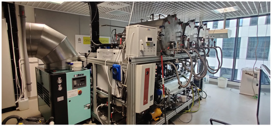 The experiments were conducted with an adsorption chiller located at the Center of Energy, which is a part of AGH University of Krakow (Kraków, Poland). The investigated adsorption chiller (Figure 1) possesses three beds and can operate in a chilling mode or a water desalination mode. It is worth noting that if the chiller is operating in cooling mode, only two beds are used, whereas if the chiller is operating in water desalination mode, it uses three beds.
