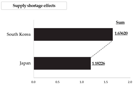 The results of analyzing the effects of one dollar of investment or production in the South Korean and Japanese EPSs on the production of other sectors are presented in the second column of Table 4. This contains values for each sector and their rankings. The total production-inducing effect, which implies the amount by which one dollar of investment or production in the South Korean and Japanese EPSs causes production to rise in the national economy, was analyzed as 1.62449 or 1.71478, respectively. The total production-inducing effects of one dollar of investment or production in the South Korean and Japanese EPSs are shown in Figure 2.