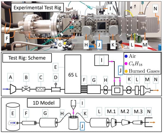 - Gallis, P.; Misul, D.A.; Salvadori, S.; Bellenoue, M.; Boust, B. Development and Validation of a 0-D/1-D Model to Evaluate Pulsating Conditions from a Constant Volume Combustor. In Proceedings of the Joint Meeting of International Workshop on Detonation for Propulsion (IWDP) and International Constant Volume and Detonation Combustion Workshop (ICVDCW), Berlin, Germany, 15–19 August 2022. [Google Scholar] [CrossRef]