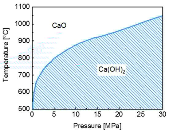 CaO-Ca(OH)2 phase transformation vs. temperature and pressure of water.