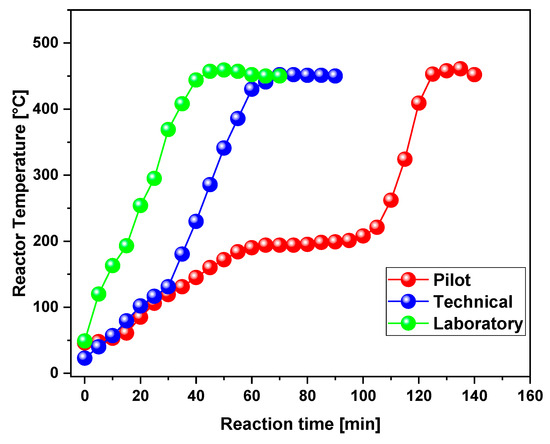 3.2.2. Scaling-Up Effect on the Chemical Composition of the Liquid Phase