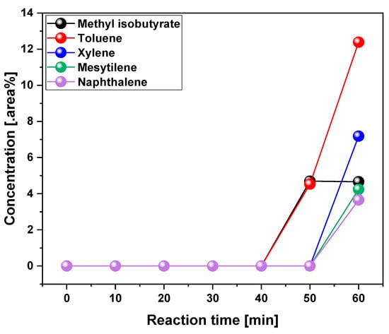 - Szabo, E.; Olah, M.; Ronkay, F.; Miskolczi, N.; Blazso, M. Characterization of the Liquid Product Recovered through Pyrolysis of PMMA–ABS Waste. J. Anal. Appl. Pyrolysis 2011, 92, 19–24. [Google Scholar] [CrossRef]