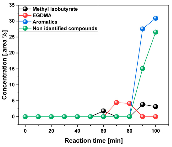 - Holland, B.J.; Hay, J.N. The Kinetics and Mechanisms of the Thermal Degradation of Poly(Methyl Methacrylate) Studied by Thermal Analysis-Fourier Transform Infrared Spectroscopy. Polymer 2001, 42, 4825–4835. [Google Scholar] [CrossRef]